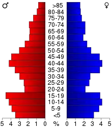 The age distribution was 28.30% under the age of 18, 7.20% from 18 to 24, 26.40% from 25 to 44, 22.00% from 45 to 64, and 16.00% 65 or older. The median age was 38 years. For every 100 females there were 98.80 males. For every 100 females age 18 and over, there were 95.70 males.