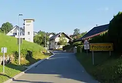 Podbrezje (pronounced [pɔdˈbɾeːzjɛ]; German: Birkendorf[2]) is a village in the Municipality of Naklo in the Upper Carniola region of Slovenia. It includes the hamlets of Dolenja Vas (Slovene: Dolenja vas, German: Unterbirkendorf[2]), Srednja Vas (Slovene: Srednja vas, German: Mitterbirkendorf[2]), Britof (German: Freithof), and Podtabor (German: Tabor),[2] which were separate settlements before the Second World War. The settlement lies on a terrace on the left bank of the Sava River known as Dobrava. Since the early 19th century Podbrezje has been known for its orchards, which can be seen around the village to this day.[3] After the Second World War, a Yugoslav labor camp for political prisoners operated in Podbrezje.[4]