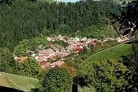 Poiana Mărului (German: Bleschbach; Hungarian: Almásmező) is a commune in Brașov County, Transylvania, Romania. It is composed of a single village of the same name.