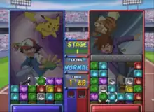 The game includes several modes of play. In "1P Stadium", players control Ash Ketchum as they compete to defeat a series of increasingly difficult opponents and become the Puzzle Master. "2P Stadium" allows two players to choose one of 15 Pokémon trainers to play as, and battle one another using different gameplay rulesets. Other game types include "Marathon", which challenges players to continue playing as long as possible before the blocks fill the screen; "Time Zone", in which players attempt to achieve the highest score possible within a two minute time limit; "Spa Service", a stage-based mode where the player must clear a target number of lines to advance to the next stage; and "Puzzle University", a puzzle mode where players must clear predetermined block configurations within a limited number of moves.[4] The game also includes modes designed to teach newer players, including "Professor Oak's Lab", in which Professor Oak provides several tutorials on how to play; and "Mimic Mansion", a training arena hosted by Tracey Sketchit that demonstrates techniques and allows players to practice.
