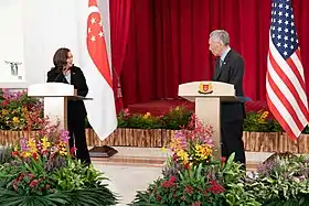 - ↑ Pitofsky, Marina (November 20, 2019). "Kamala Harris: 'Donald Trump got punked' by North Korea". The Hill.