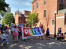 Pete Buttigieg supporters marching in the 2019 Boston Pride Parade