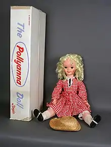 The film generated a trickle of juvenile merchandise, including a Dell comic book,[12] a paper-doll collection, an LP recording, an illustrated Little Golden Book, and a 30" Uneeda character doll in a red and white gingham dress, pantaloons, and boots. Disney was selling photo lockets as part of a merchandise promotion, with the quote claiming to be from Abraham Lincoln on them, "If you look for the bad in mankind expecting to find it, you surely will." Director and screenwriter David Swift discovered the necklace in a gift shop while on vacation with his family and called the studio to have the item recalled immediately, as it was not a quote from Lincoln, but actually a paraphrasing of a line from Eleanor Porter's original 1913 novel written for the film.[13]