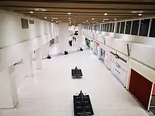 The airport features a single terminal that caters for both domestic and international flights. The terminal building contains a check-in hall, a common baggage claim hall, a large retail area with food and retail outlets as well as waiting areas located on the ground floor. The upper level contains a security area and a departure concourse with a VIP Lounge and five gates, one of which has a jetbridge.[4] The terminal can accommodate up to 300 people.