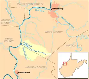 ![]() Pond Creek and its watershed in Wood and Jackson counties, West Virginia | |