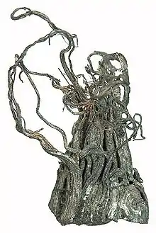 The Porco tuff is of dacitic composition. It contains abundant crystals and phenocrysts of biotite, plagioclase, quartz, and sanidine. Close to the Apo Porco and Huayna Porco hills, the tuff has been altered to varying degrees, forming propylite and sericite.[4] A number of individual veins of ore rock cross-cut the Porco tuff and have names such as Cerro Milagro vein system, Larga vein, Panfilo vein, and San Antonio vein. Ore minerals include acanthite, arsenopyrite, cassiterite, cerussite, galena, limonite, pyragyrite, pyrite, semseyite, sphalerite, stannite, and stephanite.[6]