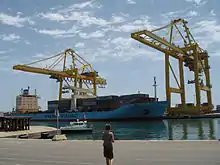 It is the largest port in Spain with almost 100 million tons in 2015 [3] and second largest in the Mediterranean Sea,[4] and in 2018 was the 31st in the world in container shipping,[5] and 33rd overall in 2019.[6] In 2010 it exceeded 70 million tons in total traffic and more than 2.8 million containers.[7] The port totals over 10 km of quays in different basins, which manage all types of passenger and freight traffic.