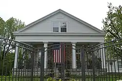 The Post House is a historic house located at 1516 State St. in Alton, Illinois, United States. William Post, a steamboat captain who later became mayor of Alton, built the house in 1837–38. The brick and limestone house is designed in the Greek Revival style. The house's front facade features four Doric columns topped by an entablature and a pedimented gable end. The front porch of the house wraps around both sides, each of which has an additional column and a pilaster. The cornice and front pediment are both dentillated. James Patterson, owner of the Illinois Iron Works, purchased the house in 1854; Patterson may have added the iron porch railing.[2]