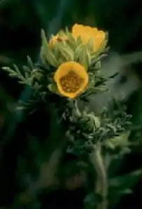 Potentilla pensylvanica (P. pensylvanica)is a species of cinquefoil known by the common names Pennsylvania cinquefoil[1] and prairie cinquefoil[2] and in the language Shoshoni, it goes by the name Ku'-si-wañ-go-gǐp. It is native to much of northern and western North America, including most of Canada and the western half of the United States. P. pensylvanica grows in many types of habitat. The plant is quite variable in appearance. It may be small and tuftlike or slender and erect. The leaves are divided into a few leaflets which are deeply lobed and have hairy undersides. The inflorescence is a cluster of several flowers, each with five yellow petals a few millimeters in length. The flower is 3 to 5 mm wide. P. pensylvanica grows in elevations between elevations 2700 to 3800 meters.