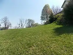 The hill the house was built into is seen on the right.