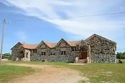 The Poughkeepsie School Building is a historic school building in Poughkeepsie, Arkansas, between Arkansas Highway 58 and Cherry Street. It is a single-story fieldstone building in the shape of an H, with front-gabled wings flanking a central horizontally-ridged section. The school was built in 1929–30, and is a well-preserved representative of a rural Arkansas stone school of the period.[2]