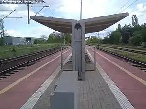 Poznań Krzesiny railway station is a railway station serving the Krzesiny neighbourhood of the city of Poznań, in the Greater Poland Voivodeship, Poland. The station is located on the Kluczbork–Poznań railway and Poznań Krzesiny–Kobylnica railway. The train services are operated by Przewozy Regionalne.