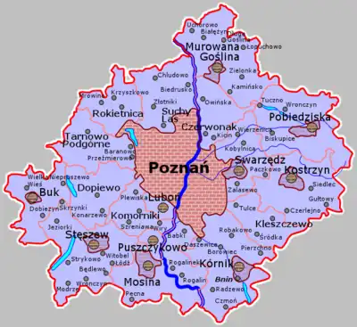 ![]() Poznań city (dark red) and Poznań County (orange) | |