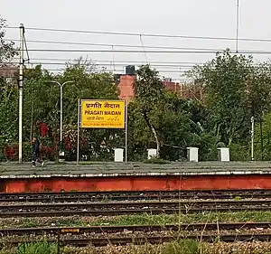 Pragati Maidan railway station is a small railway station in Pragati Maidan which is a residential and commercial neighborhood of the New Delhi district of Delhi. Its code is PGMD.[1] The station is part of Delhi Suburban Railway. The station consist of 2 platforms.[2][3]