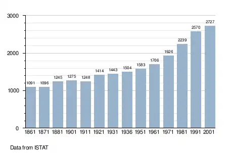 - ↑ "Popolazione Residente al 1° Gennaio 2018". Italian National Institute of Statistics. Retrieved 16 March 2019.