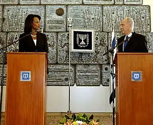 - 1 2 Jim Teeple, "Shimon Peres Sworn In as Israel's President" Archived 15 July 2007 at the Wayback Machine, VOA News, 15 July 2007.