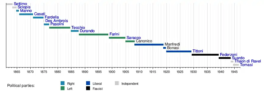 1 December 1919 | 21 January 1929 | 9 years, 51 days | Liberal Union / Italian Liberal Party / Independent |