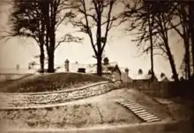 The Giant's Grave was a prehistoric burial mound which was about eight feet high. It had trees growing on it until houses were built nearby around 1910. The trees were then felled and the mound was buried under soil to form part of the back gardens of the housing.[1][2]