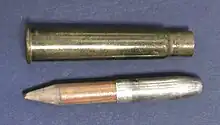 The standard gift (referred to as the smokers gift in some post war publications) consisted of the box itself, twenty cigarettes in a yellow monogrammed wrapper, an ounce of pipe tobacco, a pipe, a Christmas card and a photograph of Princess Mary.[5][8][9] It was meant to also include a tinder lighter, but a shortage of these meant that in the case of the army they were often substituted with other gifts and those in the navy received a bullet pencil.[5] The bullet pencil consisted of a silver tipped pencil (either Stirling silver of nickel silver) in a case made from a spent .303 cartridge recovered from UK firing ranges and marked with an M.[10]