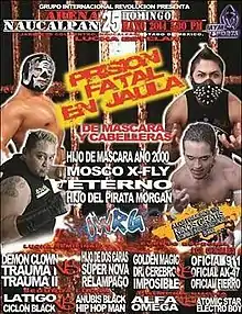 Prisión Fatal (May 2014) was a professional wrestling major event, produced by the Mexico based International Wrestling Revolution Group (IWRG) professional wrestling promotion. The event took on May 25, 2014, at "Arena Naucalpan" in Naucalpan, State of Mexico, IWRG's main venue. The show was the third overall show promoted under the Prisión Fatal name and the first of two shows in 2014 billed as Prisión Fatal. The main event was the eponymous Prisión Fatal (Spanish for "Deadly Prison") Steel cage match where the last person remaining in the cage was forced to unmasked or shaved bald as per the match stipulation. The Prisión Fatal match included Eterno, El Hijo de Pirata Morgan, El Hijo de Máscara Año 2000 and X-Fly. El Hijo de Máscara Año 2000 was the only masked wrestler in the cage risking his mask while the remaining three wrestlers put their hair on the line on the outcome of the match. The match ended when El Hijo de Pirata Morgan was the third man to leave the ring, forcing X-Fly to have his hair shaved off as a result.