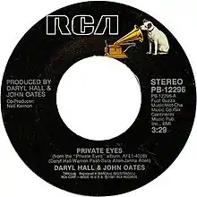 "Private Eyes" is a 1981 single by American duo Daryl Hall & John Oates and the title track from their album of the same name. The song was number one on the Billboard Hot 100 charts for two weeks, from November 7 through November 20, 1981. This single was the band's third of six number one hits (the first two being "Rich Girl" and "Kiss on My List"), and their second number one hit of the 1980s. It was succeeded in the number one position by Olivia Newton-John's "Physical," which was coincidentally succeeded by another single from Hall & Oates, "I Can't Go for That (No Can Do)".