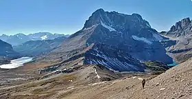 The scrambling route is via southern slopes starting from Hidden Lake.[3]