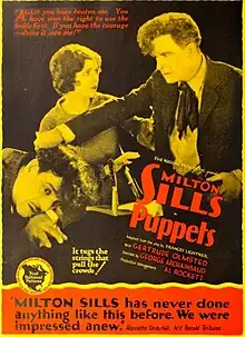 Puppets is a 1926 American silent drama film directed by George Archainbaud and starring Milton Sills, Gertrude Olmstead, and Francis McDonald.[1] It was written by John F. Goodrich based upon the play of the same name by Frances Lightner.[2]