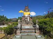 Timor has no traditional Hindu population. The temple was built during the Indonesian occupation and was intended for the Hindu immigrants of that time, who mainly came from Bali. The inauguration took place on 27 June 1987 by Governor of East Timor Mário Viegas Carrascalão.[3] After the end of the occupation, most Hindus left the country. In 2015, only 272 East Timorese profess Hinduism.[4] Now the temple is quite run down,[5] although some Balinese from Indonesia and East Timorese government has started efforts to revitalize the temple.[2]
