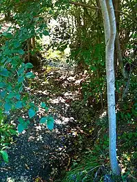 There O'Keefe Open Space Preserve protects the riparian habitat along an 800-foot (240 m) section of the creek below I-280. It is an 8.2-acre (3.3 ha) nature preserve. This section of the creek has been invaded by non-native species that compete with the native vegetation for its water, including Canary Island palm (Phoenix canariensis), common fig (Ficus carica), plum (Prunus), blue gum eucalyptus (Eucalyptus globulus), European olive (Olea europaea) and Siberian elm (Ulmus pumila).[8][9]