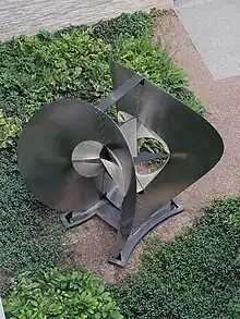 Construction in the Third and Fourth DimensionAntoine Pevsner 1961–1962 1972 Cast bronzeCourtyard of Jadwin Hall [8][9]