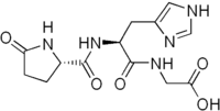 - ↑ Bauce, Lorenzo G.; Elliott, Crystal; Hughes, Rhiannon; Goren, H. Joseph (1 January 1981). "Synthesis and assay for activity of a proposed anorexogenic agent, L -pyroglutamyl- L -histidyl-glycine". Canadian Journal of Physiology and Pharmacology. 59 (1): 88–90. doi:10.1139/y81-015. PMID 7214215.