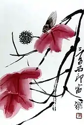 “Qi Baishi started receiving artistic training... which consisted of fundamentals in gongbi (工筆) mode, which features fine brushwork and meticulous detail”.[1] He was taught that every aspect of painting mattered, from the subject matter to the way the ink was applied to the paper. His landscape paintings came as a result of his next mentor Tan Pu. Because of his training, he then realized that he could pursue art as his full-time career instead of just dreaming to become a professional artist.[2] Despite his training in gongbi, Qi is famed for painting in the freely expressive xieyi (寫意 ‘sketching thoughts’) style.