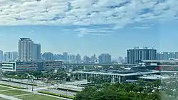 Qingpu Special District (Chinese: 青埔特區), also known as Taoyuan Qingpu HSR Special Area, is located at the border of Zhongli District and Dayuan District in Taoyuan, Taiwan. The total area of Qingpu Special District is 490 hectares. It was designed in the 2000s after the Taoyuan HSR station opened in 2007 and developed from the 2010s onward, before the city was upgraded from county to special municipality. Qingpu Special District was designated as the new prime central business district, administration center, shopping center, and transport hub of Taoyuan City, replacing the old city center around Taoyuan railway station.[1][2] Important infrastructure, such as Taoyuan HSR station, Rakuten Taoyuan Baseball Stadium, Taoyuan Sunlight Arena and Hengshan Calligraphy Art Center, is located within this area. The decision to earmark Qingpu as the new prime center reflects its location: it is close to Taoyuan International Airport and is only one or two stops away from cities such as Hsinchu and Taipei by high-speed rail.[3][4] In 2016, Qingpu hosted the Taiwan Lantern Festival.[5]