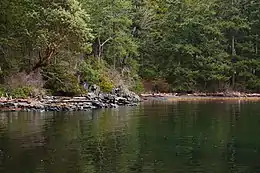 The Qualicum National Wildlife Area (NWA) is situated on the Nanaimo lowland, which is a stretch of land that lies above the Jordan River, west of Victoria, and stretches up to the Johnstone Strait.[6] The topography of the Qualicum National Wildlife Area (NWA) consists of both coastal and land ecosystems.[6] The land ecosystems found in the Qualicum NWA are upland meadows, whereas the coastal ecosystems include intertidal marsh habitats, and estuarine ecosystems, which take up 82 hectares.[6] Coastal Douglas-fir forests are also located in the Qualicum NWA, only being found in 0.3 percent of the province.[7] These Ecosystems make a habitat for many organisms, including several endangered species.[6] The area has a meadow/arbutus[8] system.