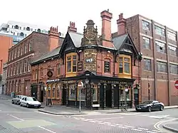The Queen's Arms (sometimes styled "The Queens Arms") is a Grade II listed public house in Birmingham, England, built c.1870.[1] It is noted for the tiled art nouveau signage on its exterior, which was remodelled in 1901 to the designs of the architect, Joseph D. Ward for its then owners, Mitchells & Butlers.[1][2]