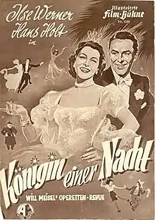 Queen of the Night (German: Königin einer Nacht) is a 1951 West German musical film directed by Kurt Hoffmann and starring Ilse Werner, Hans Holt and Georg Thomalla.[1] It was shot at the Spandau Studios in West Berlin.