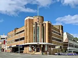 The three storeyed brick building is prominently located on the corner of Ann and Boundary Streets, opposite Centenary Place. It is built with applied Art Deco motifs influenced by the Functionalist movement.[1]