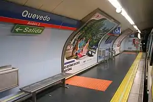 Quevedo [keˈβeðo] is a station of Line 2 of the Madrid Metro.[1] It is named after Francisco de Quevedo, a Spanish writer.