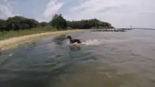 A dog beach is at the southernmost part of Quiet Waters Park near the South River. It is partially enclosed by a chain-link fence.