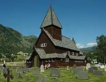 Røldal Stave Church (Norwegian: Røldal stavkyrkje) is a parish church of the Church of Norway in Ullensvang Municipality in Vestland county, Norway. It is located in the village of Røldal. It is the church for the Røldal parish which is part of the Hardanger og Voss prosti (deanery) in the Diocese of Bjørgvin. The brown, wooden stave church was built in around the year 1250 using designs by an unknown architect. The church seats about 130 people and is built in a long church design.[1][2] The church is a preserved historic museum, but it is still a regularly-used parish church that holds regularly scheduled worship services twice a month.