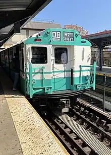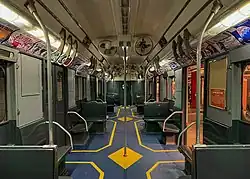 • Car 3189 has been preserved by the New York Transit Museum. The car had an experimental 3-passenger transverse fiberglass interior seating installed in 1969, which has since been removed. It was retired from revenue service in 1984, but was later repainted solid blue and used as a training car for road car inspectors at the TA's Pitkin Yard in Brooklyn. The car was restored to operating status in 2022 – during which the car was repainted into the aqua blue/white scheme – and has been operating on New York Transit Museum-sponsored excursions since September 2022.[11]