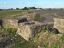 Upon its release from military use, in the 1960s, the A372 was restored to near its original route by using a considerable length of the former main runway.[1] The former secondary runways are clearly evident in aerial photography, although most of the concrete has been removed. The former perimeter track has been reduced to a single-lane agricultural road and the pan and loop dispersal hardstands have been removed. Several derelict buildings still remain, including the control tower and a large cluster to the northwest of the perimeter track , including the base of what appears to be the remains of two large J-Type hangars and a support site. No evidence of the Pierced Steel Planking extensions to the runways remain nor of an ammunition dump.