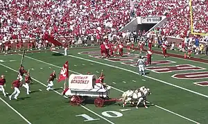 - They have had to apologize to head coach Bob Stoops twice: once for knocking him down during a pre-game run down the field at the Independence Bowl, and another time for patting him on the butt with their paddles, also during a pre-game run down the field.[3]