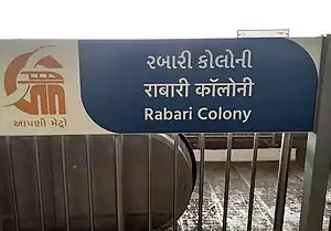 Rabari Colony is an elevated metro station on the East-West Corridor of the Blue Line of Ahmedabad Metro in Ahmedabad, India. This metro station consists of the main Rabari Colony BRTS and the Vivekanand Vidhyalaya School in Sathyam Nagar (Ahmedabad). This metro station was opened to the public on 4 March 2019.[1][2][3][4]