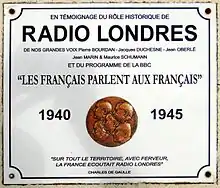 Commemorative plaque of Radio Londres in the cemetery of Asnelles, Calvados