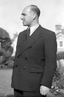 Radoje Knežević was born on 20 August 1901 in the village of Stragari, near Kragujevac, Kingdom of Serbia.[1] He was the son of Lazar and Mileva Knežević (née Veljković). Prior to the outbreak of World War II, he was a professor in Belgrade,[2] and had been a French-language tutor to Prince Peter.[3] He was also a prominent member of the Serbian Cultural Club.[4] Knežević was married, and had two children.[2]
