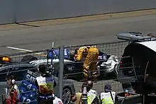 Schumacher after a serious accident at the 2004 United States Grand Prix