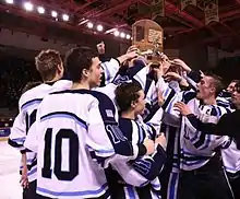 RV's hockey team hoists up the state championship trophy in 2013.