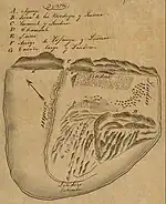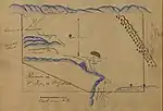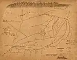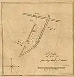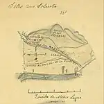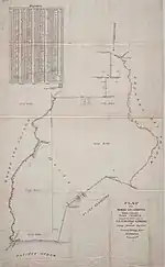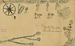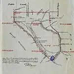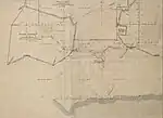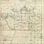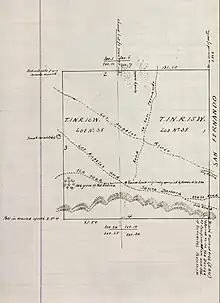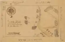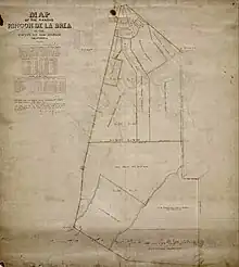 Diseños are hand-drawn maps submitted to the U.S. government indicating the extent of a land grant as understood by the grantees.[8] Diseños and expedientes (written descriptions of the grants) were used during the U.S. land-patent process that began when Mexican Alta California became the U.S. state of California in 1850.[8] Diseños are distinct from later maps produced by U.S. surveyors within the extant American rectangular survey system.[8] Several of the earliest surveys, or plats, of Los Angeles-area ranchos were done by Henry Hancock, who himself owned Rancho La Brea and through his son is a namesake of the Hancock Park neighborhood. As for the cattle brands, many of the large ranchos had multiple brands for various herds or during various eras; the single one included here is the earliest known example.[9] Land patents were ultimately granted to over 60 Mexican, Anglo and indigenous Angelenos; the indigenous contingent was represented by Doña Victoria Reid of Rancho Huerta de Cuati, who was Gabrieleño Tongva, and Odón Chihuya, Urbano Chari, and Manuel (later Espíritu Chijulla) of Rancho El Escorpión, who were from a leading family of Fernandeño Tongva.[3]