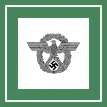 The wreathed Polizeiadler (police eagle) was worn as a cap badge and on the left sleeve by all uniformed police